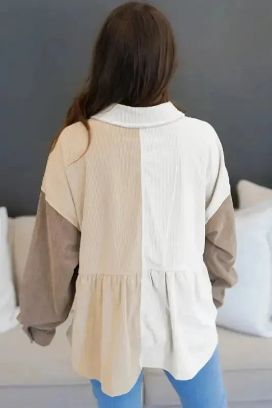 Khaki Corduroy Colorblock Button up Loose Shacket